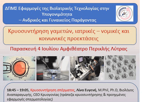 ‘Εφαρμογές της Βιοϊατρικής Τεχνολογίας στην Υπογονιμότητα – Ανδρικός και Γυναικείος Παράγοντας’ στο Πανεπιστήμιο Δυτικής Αττικής